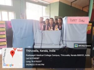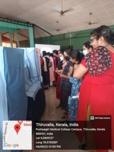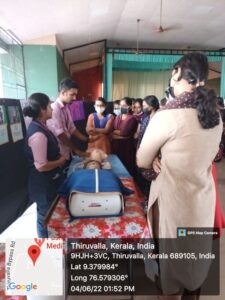 Audio visual aids plays an important role in health education. On June 4th 2022, we the 4th year BSC. (N) Students and 1st year MSC(N) conducted an AV- aids show at Pushpagiri college of nursing auditorium . This AV- aid show was based on the topic BASIC LIFE SUPPORT (BLS) AND ADVANCE CARDIAC LIFE SUPPORT (ACLS). Which was arranged under AV- aids such as chars, flannel board, bulletin board, ladder chart, film strip, flip chart, working model, still model, slide projector, OHP, LCD projector, black board, dummy, flowchart, demonstration and diorama etc. Before conducting the programme we got adequate guidance from our teacher Mrs.Anila velayudhan and Mrs.Alphonsa and Sr.Mayukha and also from our 1st year MSC (N) students. They helped us in each moves. On 3rd June 2022 evening we started our work for the preparation of different AV- aids in which we were divided into 4 groups. Every students actively participated in making AV- aids. On June 4th 2022 around 8am we started arranging the auditorium for the show. The show started at 11am and was inaugurated by professor. Vineetha Jacob (principal of pushpagiri college of nursing, thiruvalla) Sr.Mary jyothi oss, and Mrs.Renjini Devi (vice principal pcon, thiruvalla for the show, At the entry we had an entry sheet where the name, designation / year of study and signature was collected from those who came to see the show. After filling the entry sheet, they were directed to a black board where the topic of the show was displayed. Then comes the LCD projector in which the definition of BLS was displayed. After that, slide projector were the structure of the heart was depicted. After that the indication of CPR was shown in a flipchart, pathophysiology in a film strip, recovery position in a flash card, chain of survival by a cartoon presentation via chart. Then we had a puppet show presented by our students.