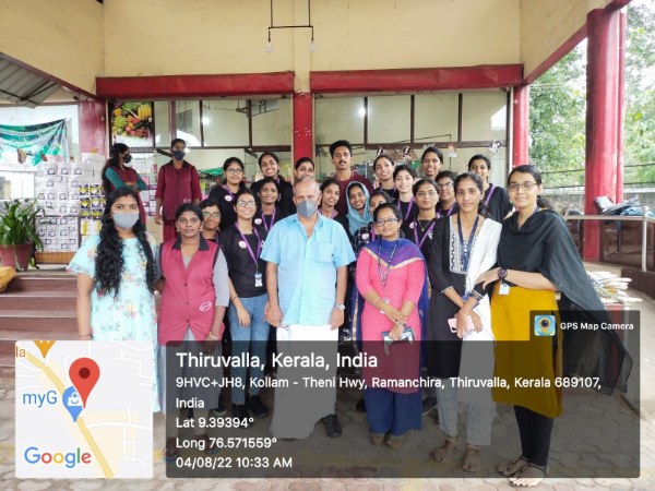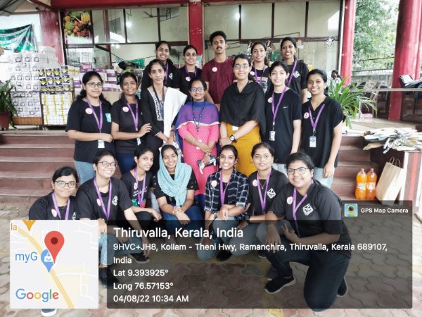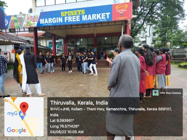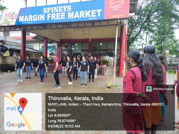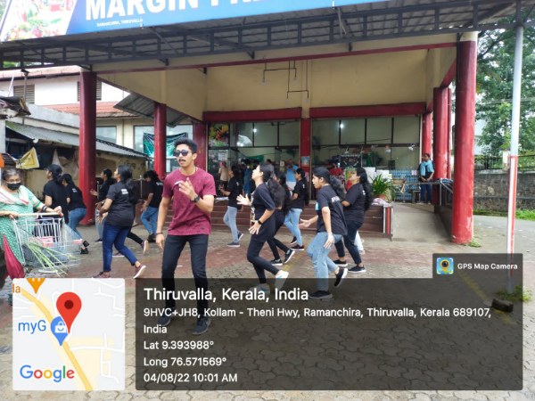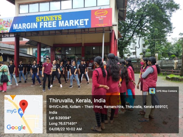 17 students (16girls and 1 boy )of third yr Bsc nursing have participated with faculties of Medical Surgical Nursing Department. After obtaining permission of concerned authorities the Principal , the Management of PCON ,the ward councillor Mr Sunil advocate (ward 37) and from Thiruvalla Police Station ,SHO Mr.vinod and the owner of Spineys supermarket, the programme dated on 04.08.22. The team reached the venue by 9:30am. Programme started with prayer followed by flash mob which made audience to gather nearby. Then etiology and management been displayed with placard .The programme ended with votes of thanks ,followed by chocolates and biscuits been given to the students by the owner of Spineys. The South Kerala Area manager Mr.Niju and Mr.Sabari have gifted UNIBIC biscuits to the students. Snacks been distributed among students from the part of college and the team have returned to college by 11 am.The team thanked the Principal mam for giving such a great opportunity to perform in the public.