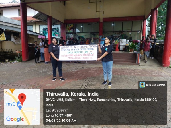As part of world Hepatitis Day ,Medical Surgical Nursing Department has organised Health awareness programme –Flash mob in front of Spineys supermarket, thiruvalla on 04.08.22.