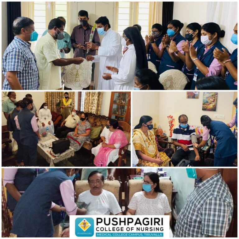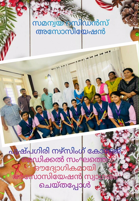സമന്വയ റെസിഡൻസ് അസോസിയേഷൻ മേഖലയിലെ ആരോഗ്യപരിപാലനത്തിൽ പുഷ്പഗിരി നഴ്സിംഗ് കോളേജിന്റ ഫാമിലി നേഴ്സ് പ്രോഗ്രാമിന്റെ സഹകരണത്തോടെ അസോസിയേഷൻ അംഗങ്ങളുടെ വീടുകൾ നഴ്സിംഗ് കോളേജ് സംഘം സന്ദർശിച്ച് ആരോഗ്യപരിപാലന പ്രവർത്തനത്തിനു തുടക്കം കുറിച്ചു._* _ഫാമിലി നേഴ്സ് പ്രോഗ്രാമിലൂടെ ഈ കോവിഡിന്റ പശ്ചാതലത്തിൽ തങ്ങളുടെ ആരോഗ്യ പരിരക്ഷക്ക് പുഷ്പഗിരി നേഴ്സിംഗ് കോളേജ് എടുത്ത ഈ സംരഭം ഏറ്റവും സഹായകരമാണ് എന്ന് അസോസിയേഷൻ സെക്രട്ടറി ശ്രീ. ഷിബു പുതുക്കേരി സൂചിപ്പിച്ചു.