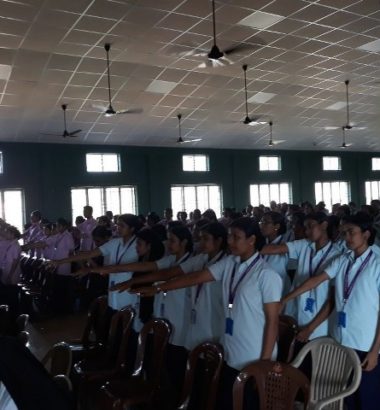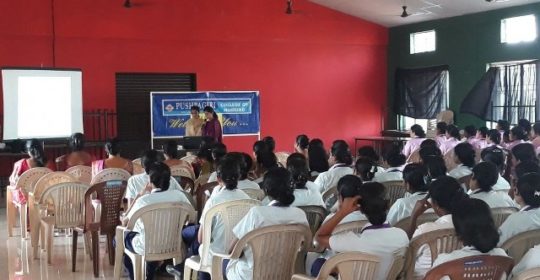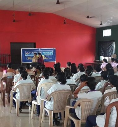 The National Service Scheme unit (NSS/FU/PNT/KUHS/2) of Pushpagiri College of Nursing conducted an orientation programme for the NSS volunteers on 26/02/2018 at 2pm in the college auditorium. The programme was started with prayer song followed by welcome speech. The power point presentation about national service scheme was presented by Ms. Treesa Mary Jose and Ms. Priya Prince(volunteer secretary and assistant volunteer secretary respectively) followed by NSS pledge. At the end of the presentation there were two games arranged by the NSS volunteer, all are actively participated. Prizes were distributed to the winners. The programme came to an end with vote of thanks and National Anthem.