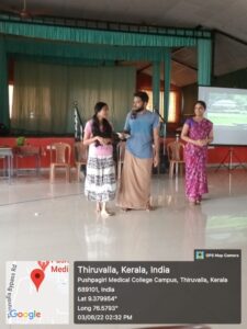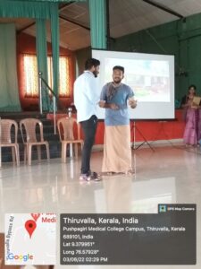 Fourth group of Nursing Education conducted a role play under the guidance of 1st year Msc Nursing students on the topic “Education system “ on june 4,2022 at 1pm.The key roles were performed by Xavier p Prasad,Sneha sam,Seethu mk,Roshan charly,Tino Thomas,Steve Thomas,Sandra raveendran,Serin joshy. The role play was based on education system.Cast were Xavier p Prasad as farmer,Sneha sam as farmer’s daughter,Seethu mk as farmers wife,Steve joseph as government employee,Tino Thomas as post man,Roshan charly as neighour,Sandra and Serin as teachers.Through this role play we portrayed the importance of education in current scenario.Each characters played their roles very well.The program was moderated by Rinta joy.At the end of the role play the moderator also explained the importance of education system.And it was concluded by thanking the audience.Each and everyone actively participated in roleplay and it gave a wonderful experience to the audience.It helps the audience to gain more knowledge about the education system