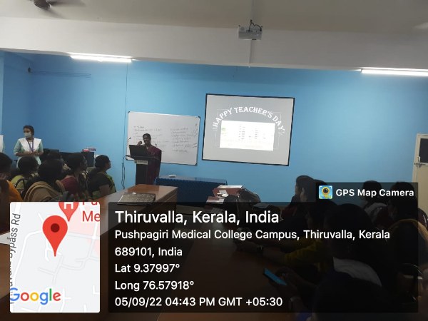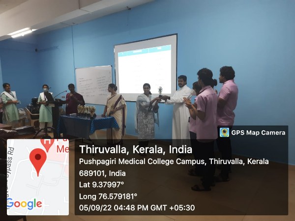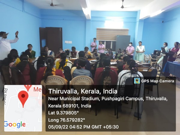 Teacher’s day was observed in a wide variety of ways on 5th of September 2022 at Pushpagiri College of Nursing,Tiruvalla. Students of each batch drew appreciation cards and wished all teachers with sweets in their classrooms and otherwise. They also prepared a pookalam of wishes and prepared short videos of appreciation. In the evening, Mrs. Vineetha Jacob, Principal and 4th year students jointly organized a meeting for all teachers along with the director, Rev. Fr. Aby Vadakumthala. In the meeting, the Director, Principal and Vice Principal appreciated all teachers for their committed services rendered to the college and to the students. Mementos of appreciation were distributed to all. In addition, the results of peer evaluation of all faculty was also announced appreciating the faculty. The teachers were divided into 5 teams for peer evaluation and the top scorers in each team are as follows-