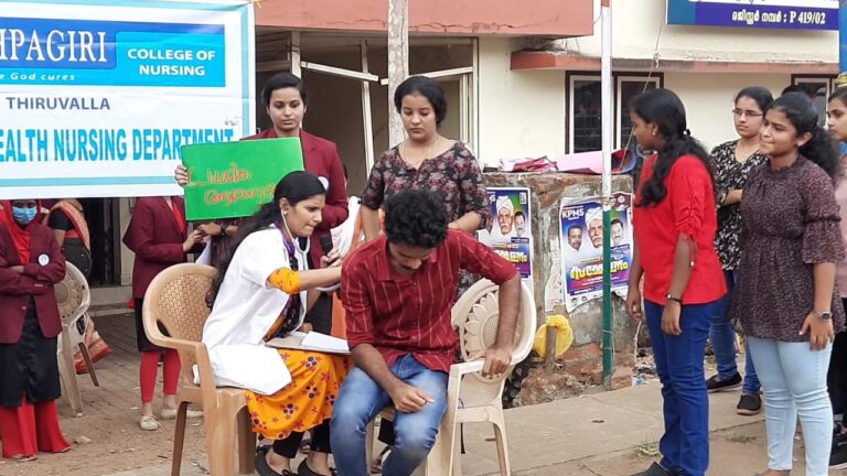 The Community Health Nursing Department of Pushpagiri college of Nursing celebrated the world Tuberculosis Day on 24/3/2022 at kuttoor panchayath.The theme is –INVEST TO END TB SAVE LIVES . We started the programme with a prayer song. The programme was inaugurated by Kuttoor gramapanchayath president followed by a flashmob which gained the attention of the people present in the kuttoor junction, followed by a skit on the theme, with the help of audio-visual aids like charts, placards, posters, ladder charts , flashcards and leaflets. Around 100 people witnessed the programme and they gained knowledge about what is Tuberculosis , mode of transmission, causes, clinical manifestations, diagnosis , management and prevention. On the whole day was very useful and we are proud to be a part of it (12 BSc Nursing 4th year students and 11BSc Nursing 2nd year student). A heartly thank our management and teachers especially Mrs.Mathew Sony (professor and HOD of community health nursing) and Mrs. Asha Ashok (NSS coordinator) who accompany us and inspired us to conduct the programme .We are also thankful to authorities of PHC Kuttoor ,especially JHI Mr. Naseem for helping us to conduct world TB day programme.